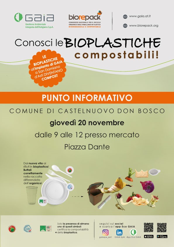 Gaia Spa in collaborazione con Biorepack, hanno come scopo quello di migliorare la qualità della frazione organica organizzando alcuni incontri: punti informativi rivolti ai cittadini e alle utenze non domestiche.